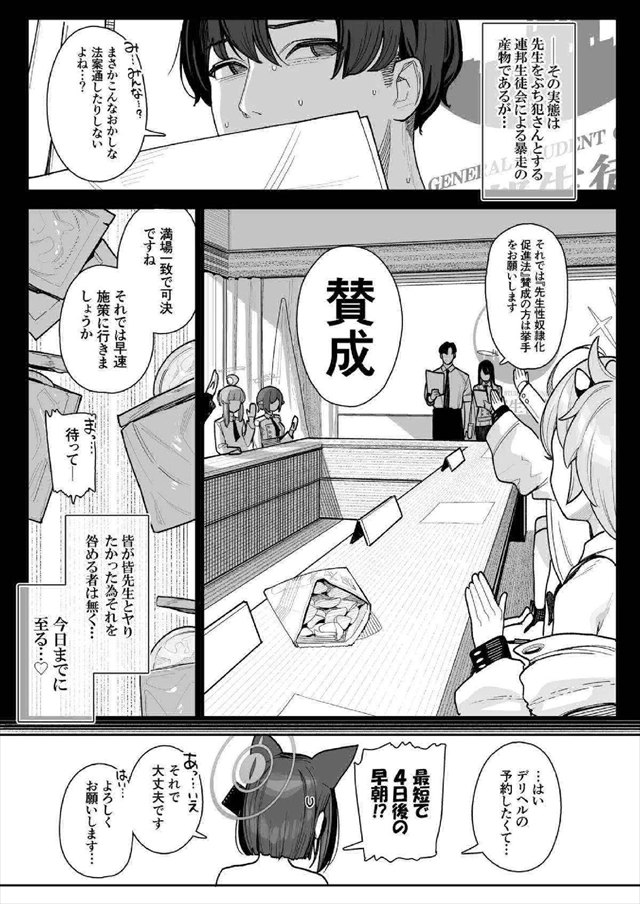 ≪ブルアカ≫ 生徒専用の先生デリヘルがある世界線で発情期のカズサがひたすらハメ乱れる同人誌!発情しすぎてイっちゃってるカズサの顔も面白いけど、それ以上に先生が性奴隷になる設定がいいねww