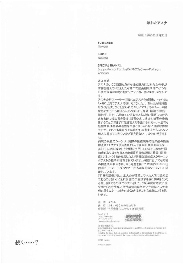 ≪ブルアカ≫ 2025年冬コミ(C107)!むちむちボディのアスナちゃんが記憶障害の病気に!障害J〇に痴漢をするって最低だけど若干興奮しちゃう自分が居ました・・