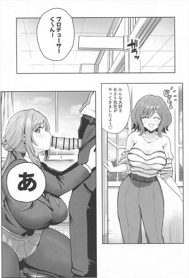 ≪学マス≫ 美鈴と手毬が勝負ってなった次のページからいきなり乳首舐め&手コキを二人でやってる絵がエロすぎ!二人の猛攻にたじたじのPさんですww