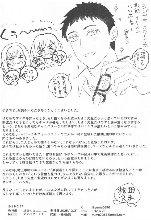 ≪学マス≫ 浴衣姿の佑芽と咲季がPの部屋を訪れ、姉妹丼をする3P同人誌♪姉妹でパイズリしながらおっぱいを吸わせるってなかなかリアルなら興奮する作品♪