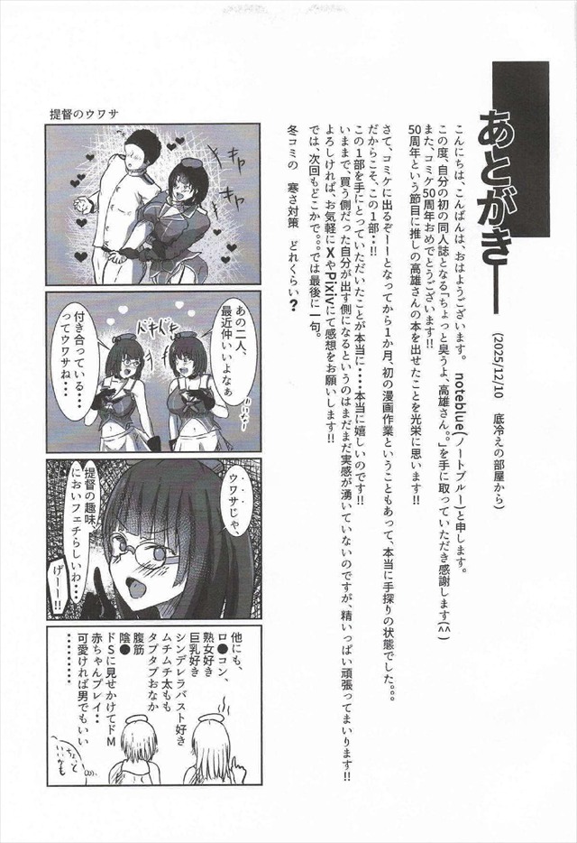 ≪艦これ エロ同人誌≫ 愛しています提督!そんな愛宕さんと高雄さんですが理由があって提督以外のチンポを入れます。愛と性欲ゆえにその他チンポ挿入!