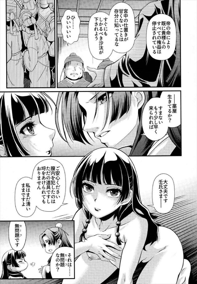 ≪薬屋≫ 処女の定義ってなんだろうと考えさせられる同人誌!ディルドーでめちゃくちゃオナっても処女なの?ww個人的に本作品が大好きだから猫猫と壬氏がパコってるのが見れて嬉しいです!!