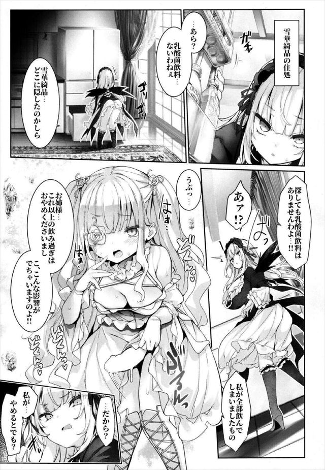 ≪ロメ≫ 爆乳美女の水銀燈が乳酸菌飲料中毒にww飲みすぎてふたなり化した雪華綺晶に足コキやパイズリをしたり、騎乗位で生ハメ膣内射精♡雪華綺晶もリミッターが外れてバックで激しくハメ乱れちゃうww