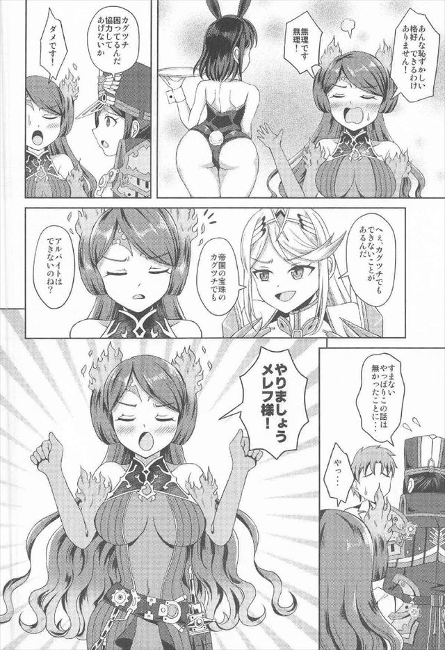 ≪ゼノブレイド2≫ バニー姿のメレフとカグツチがめちゃくちゃデカい浣腸注射でたっぷりのゼリーを注入♪ぽっこりお腹で接客をさせられた後にアナルファックでゼリーう〇ちが大量排出!!