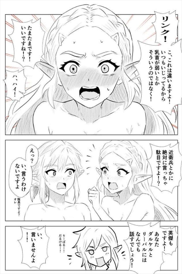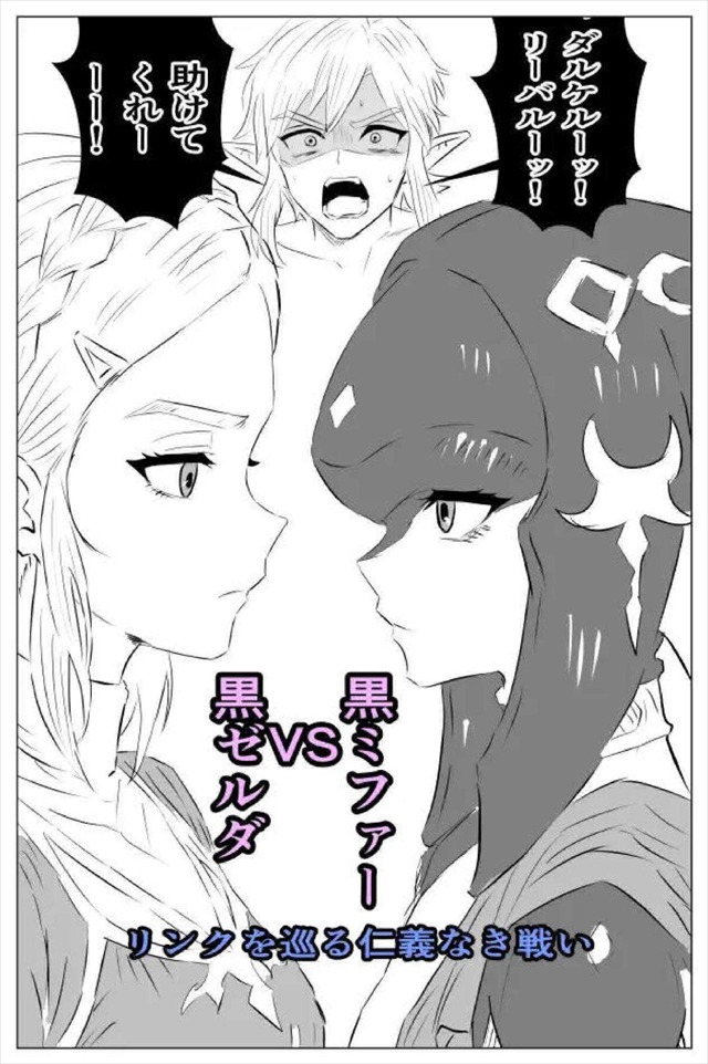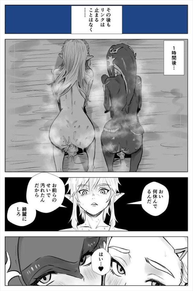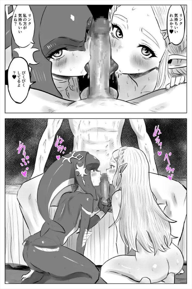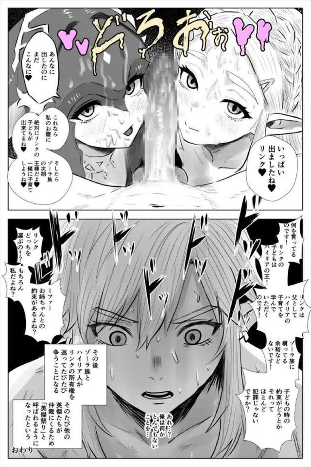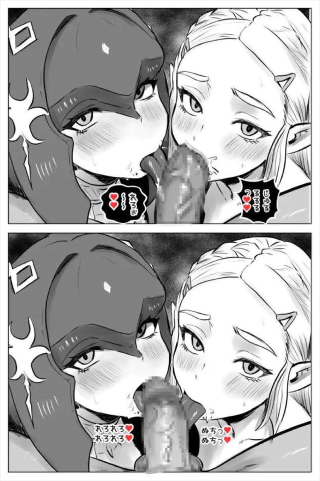 ≪ゼルダの伝説≫ ミファーとゼルダがリンクをかけて勝負するハーレムエッチ同人誌♪最初は指示だしをしていた二人だったけど途中からどSリンクが登場してどM姫に変身wwダブルフェラでお掃除フェラをするお姫様♪